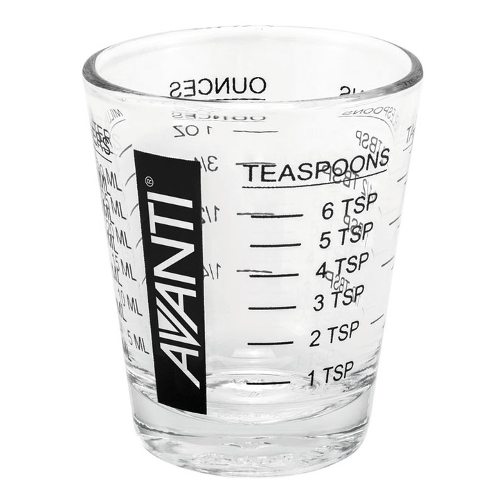 The Avanti® Mini Multi Measuring Glass is perfect for measuring small quantities of liquids and dry ingredients. Sturdier than using spoons, it easily measures and transports smaller amounts without spilling. Made from food grade glass, it allows clear view of contents for more control and accuracy. It features easy-to-read scales in milliliters, teaspoons, tablespoons and ounces. The 20 measurements are permanently marked on the glass and will not fade or wear off. A weighted base helps reduce tipping for less mess.